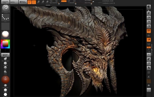 ZBrush是一个独立的雕塑和建模应用,功能十分强大,最出名的功能是各类数字雕刻,常用在游戏影视行业;ZBrush还可以用来创建UV贴图和绘制纹理,艺术家可以用服装和道具来制作整个人物,准备渲染。ZBrush是想要3D打印玩具和人偶的艺术家的一个热门的选择,也有专门针对3D打印的工具。