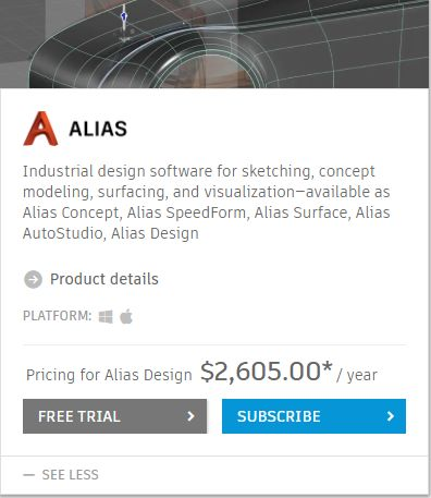 适配专业: 工业设计 **Alias在曲面建模(NUBRS)上有非常强大的功能,其最大的优点是精度高,可以创建复杂的曲面,因此主要应用于工业设计领域,尤其是汽车、航空航天一类有大量曲线外形且对精度有高要求的产品。目前这款软件并未得到广泛应用,较高的学习难度也成为制约这款软件被广泛应用的原因之一。