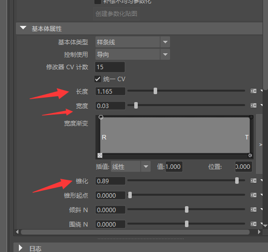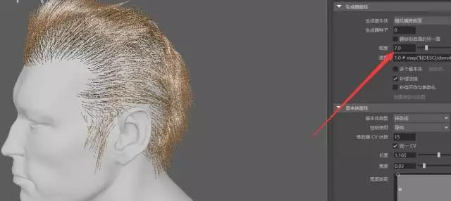 现在我们大概修改了他的长度,宽度(都是毛发的),而锥化是让头发末端不是一刀切的状态,让末端变细,密度控制毛发的数量。
