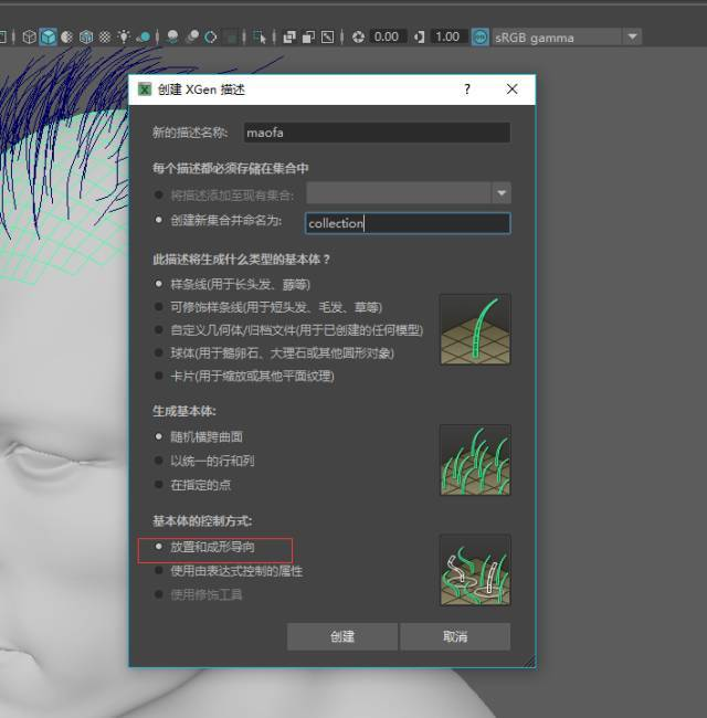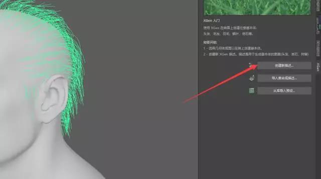选择刚刚复制出来的面,用Xgen的创建描述,如图所示:
