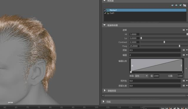 为了让头发的效果更加自然,这里我们再使用修改器的中噪波效果,使其头发不至于太直而显得呆板。操作如下图: