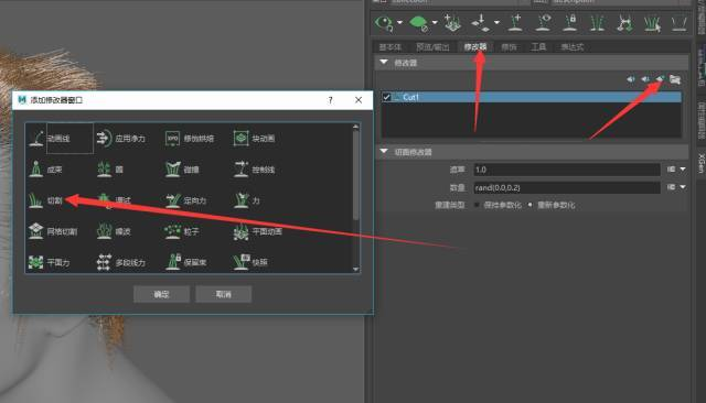 现在来看我们的头发过于整齐,不够自然。这里我们添加一个切割的修改器,做出头发末梢参差不齐的效果。如下图: