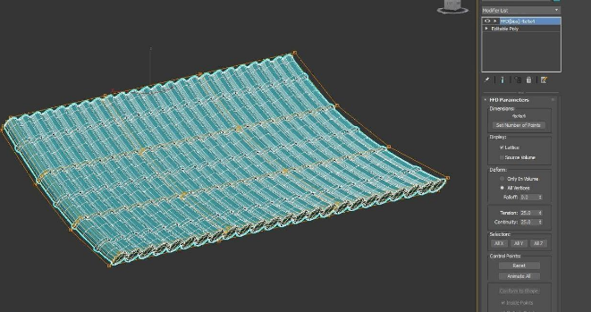 对它使用modify的FFD(box)4x4x4的控制器,对着黄黄的格子按键盘左边的1,再按W去拖曳成你喜爱的变形形状
