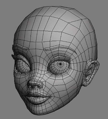 「有机的模型(特别是面部)中好的拓扑可以达到更好的结果。根据网孔边缘优化的构成,皮肤的变形以及变形目标中会有非常大的帮助。面部的模型中,眼睛和嘴巴的放射状边缘循环非常值得参考。所以尽可能避免可以看到的三角形多边形。(Andrew Hickinbottom)在面部的拓扑中可以花费更多的时间。