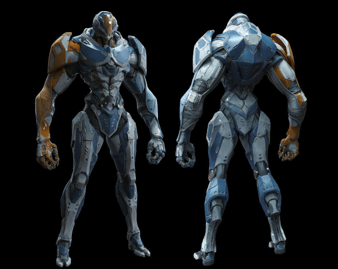 除非追求某些特殊的设计风格,角色的服饰与配件都应该在遵循身体基本结构的前提下进行创作。一件符合正常剪裁规律的外套或者符合正常活动原理的盔甲会自然而然的带有令人信服的接缝、钮扣等细节;一个符合生物运作机能的逆足则应该具备正确的骨骼和肌肉结构。即使是纯装饰性的尖刺等浮夸的元素,也应该在材质、与身体的连接方式上有合理的表现。