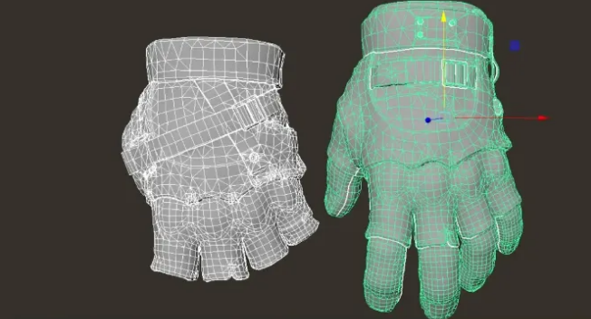 几 何关于拓扑,这是一种经典方法-从ZBrush抽取的网格被导入3D Coat中。那里的重新拓扑过程非常简单和舒适,尤其是对于像这种手套这样的简单模型而言。UV是在Maya的UV编辑器中制作的。