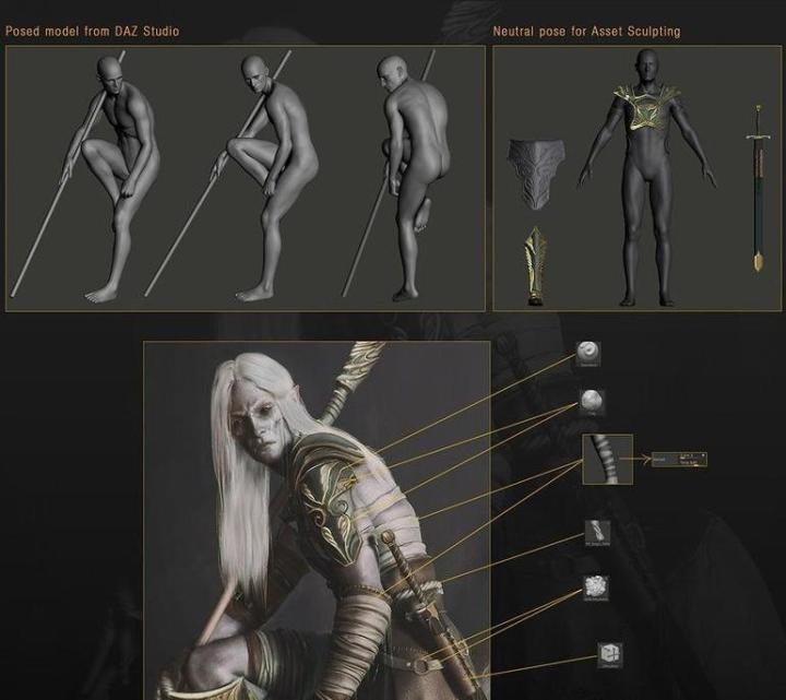 制作写实风格的高精度男性角色、次世代怪物、次世代写实女性角色等为中心内容,重点学习角色头部、手部的制作、强化人物结构和骨骼肌肉。以及细节的雕刻、贴图的绘制等,包括人体布线和复杂的装备,毛发等贴图的表现方法等。Marmoset、UDK导入引擎最终效果调节。