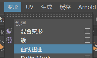 7、选择物体再选择曲线,点击变形-曲线扭曲,就可以制作出绳子模型了。