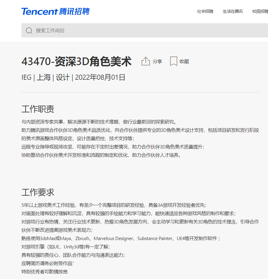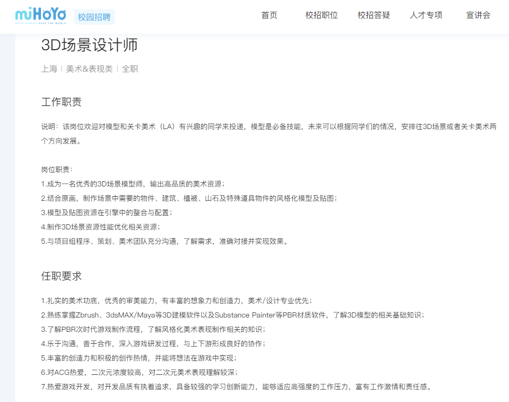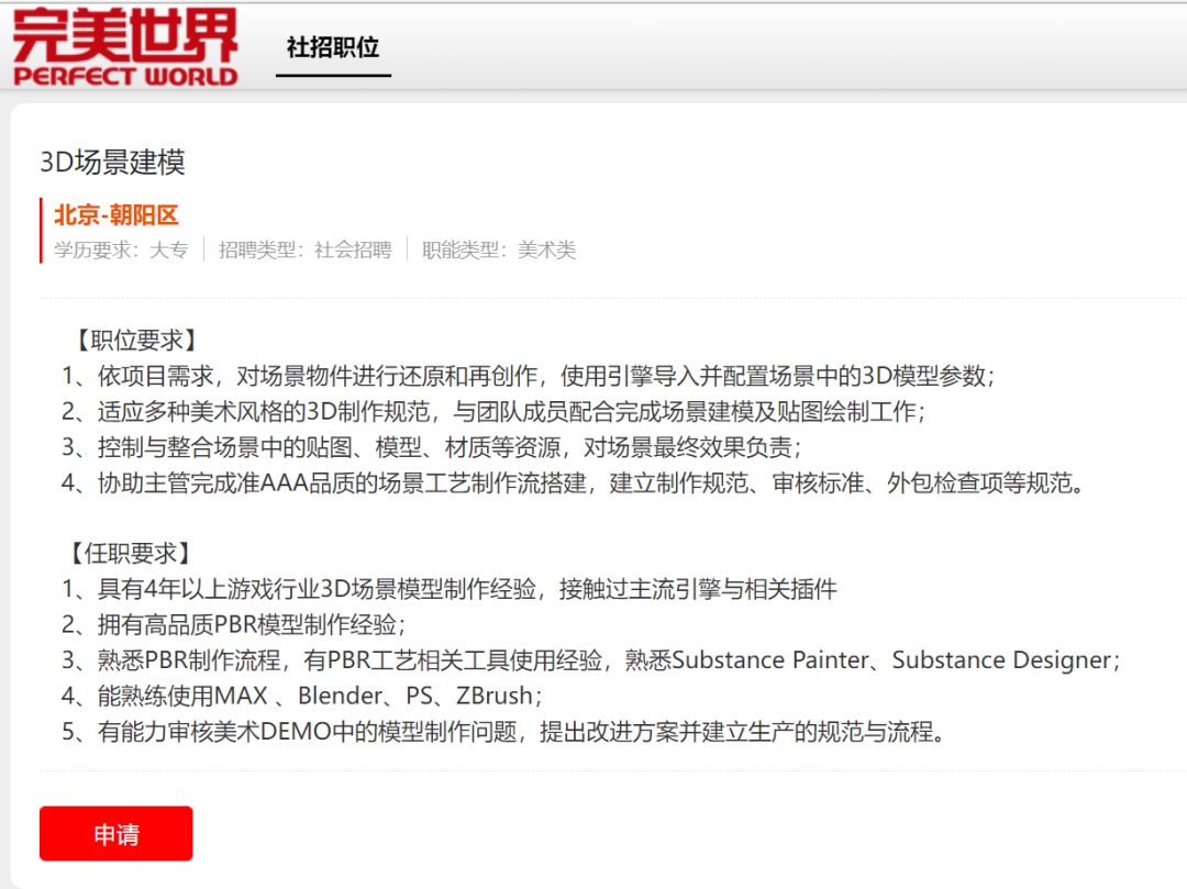 那么,对于游戏3D建模这个岗位来说,游戏名企的用人标准又是怎样的呢?来~以这几家公司岗位要求为例,带大家详细了解需要拥有哪些技能。