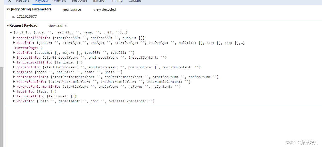 思路:既然后端做了限制那我们只要没有填写查询条件时不传相对应的字段就行,观察数据格式是对象套对象,这里可以使用Object.values()和Object.keys()对象方法,一个是把对象的所有value返回成一个数组,一个把所有key返回成数组,