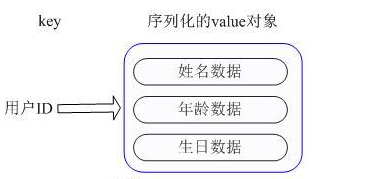 Key仍然是用户ID, value是一个Map,这个Map的key是成员的属性名,value是属性值,这样对数据的修改和存取都可以直接通过其内部Map的Key(Redis里称内部Map的key为field), 也就是通过 key(用户ID) + field(属性标签) 就可以操作对应属性数据了,既不需要重复存储数据,也不会带来序列化和反序列化。