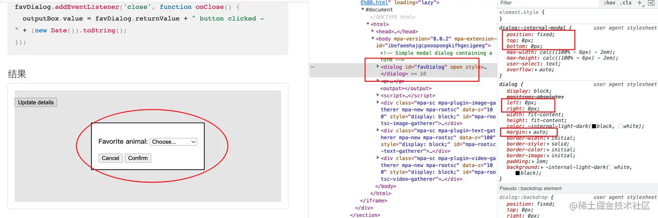 这是一种对于非相对定位的垂直水平居中方法(记好了,面试官问你垂直水平居中的方法又多了一个),我是从 HTML 原生的 <dialog/> 标签中了解到的(之前在12个可能你没见过,但非常实用的 HTML 标签介绍过 <dialog/>标签)
