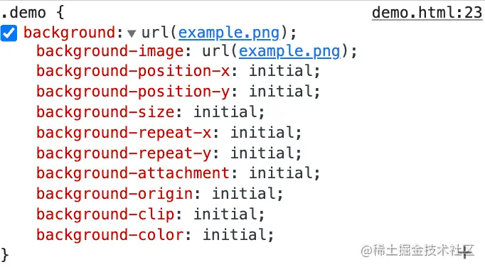 如上图所示,它默认把所有值都设置成了 initial,因此无论之前用到了其中哪个值都会被覆盖,虽然 initial 设置了跟没设置是一样,都表示保持元素该属性的初始值