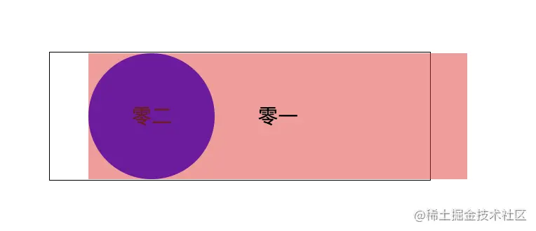 可以看到,零一 这个元素在脱离文档流后,仍然是停留在它处于文档流时的位置,那此时如果给他设置宽高 100% 会是什么样呢?