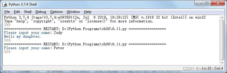 - 如果用户输入“Judy”,那么要打印的字符串就是 "Hello my daughter.";