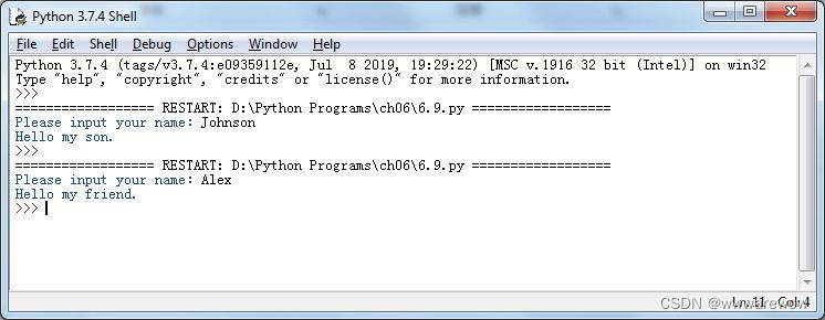 这次,如果输入的不是“Johnson”而是“Alex”,那么程序会打印出 "Hello my friend.",如图 3所示。