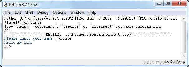 可以看到,当输入内容是“Johnson”,满足条件 name= ="Johnson",才会打印出 "Hello my son.",而如果输入其他内容,因为该条件不满足,所以不会打印任何内容,如图2 所示。