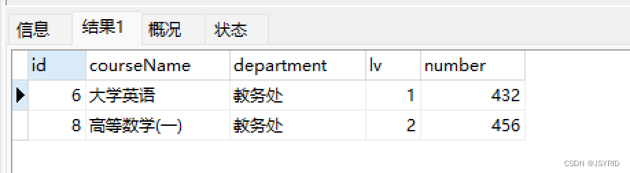 INSERT INTO `course` VALUES ('2', 'MySQL应用基础', '信息工程系', '2', '567');