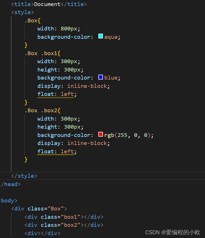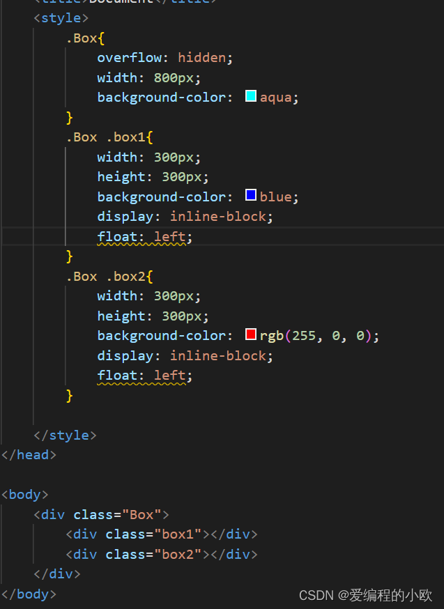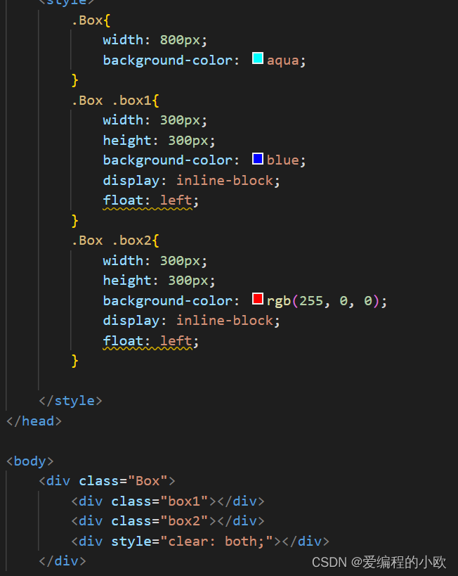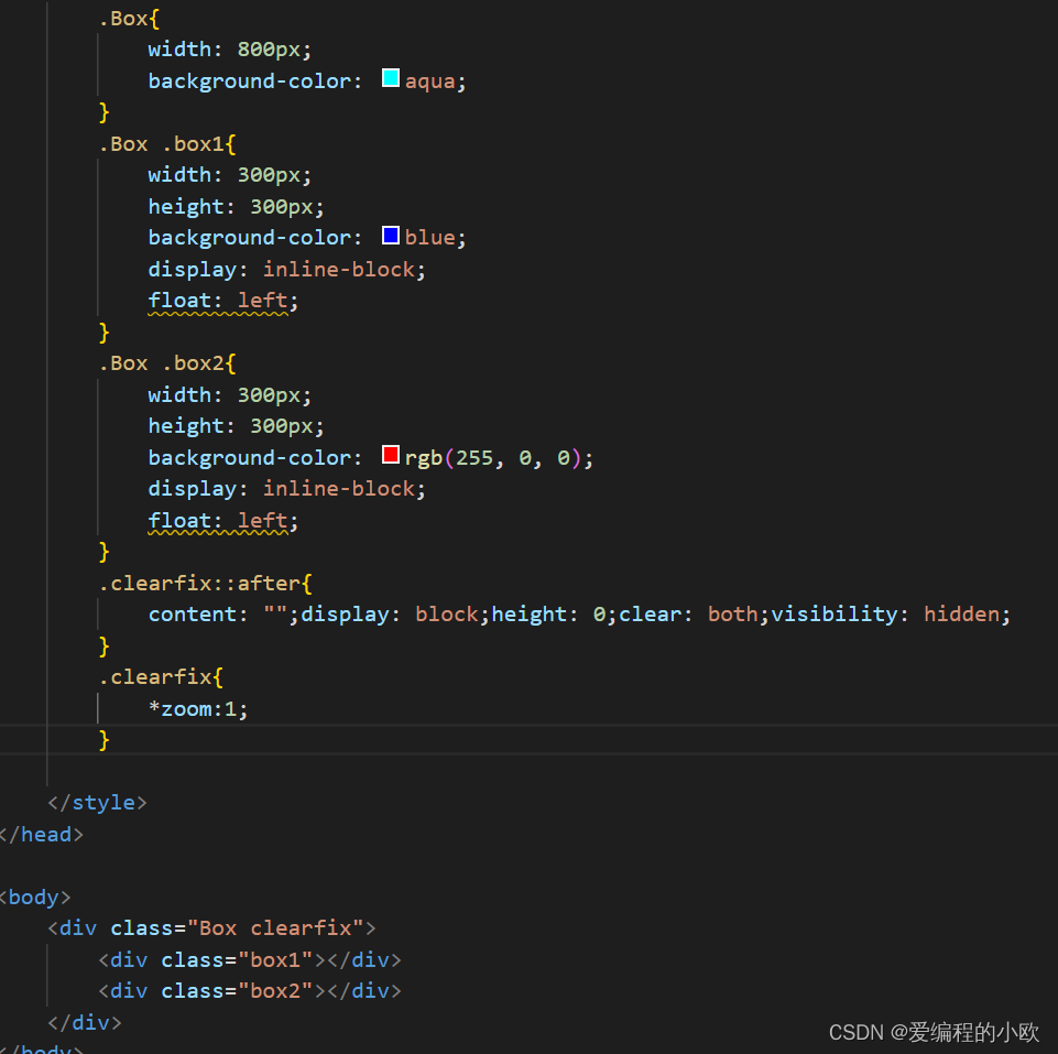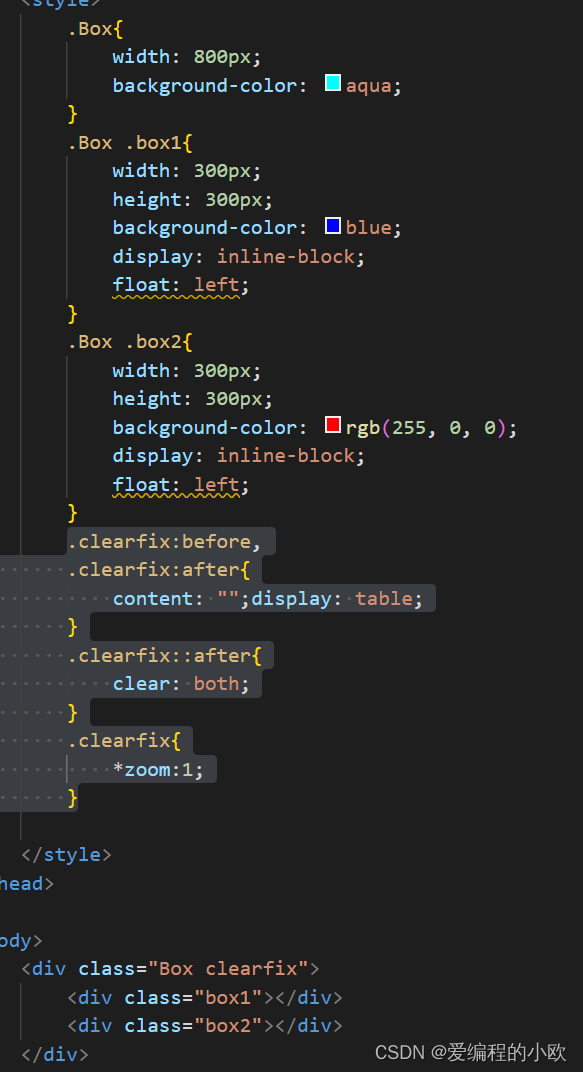 c.原理:闭合浮动(就和像給父盒子两侧的添加一个或两个空标签,规定父盒子的大小和子盒子一样)