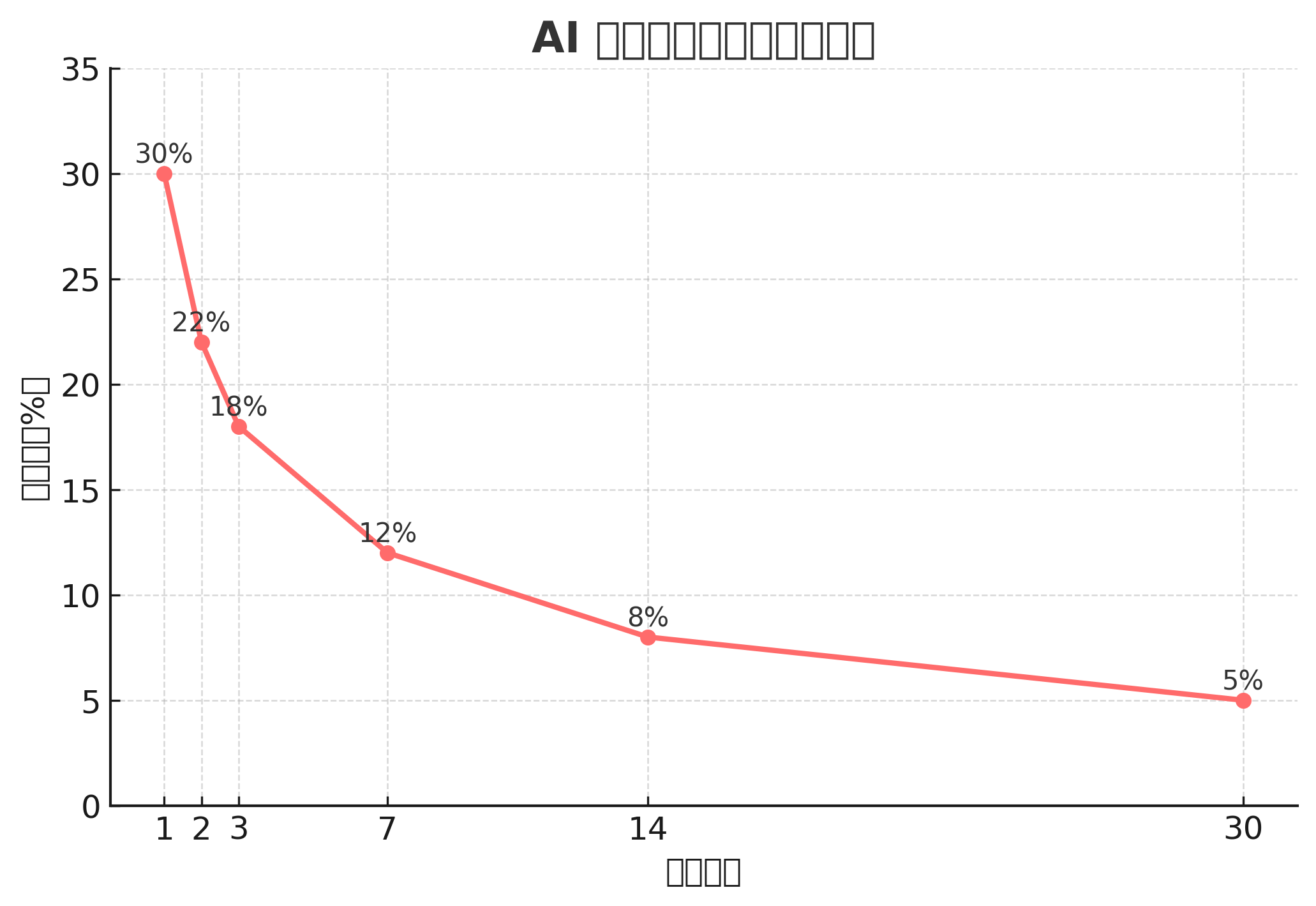 以下为行业调研中 AI 工具类产品(含海外 SaaS)平均留存率参考值:
