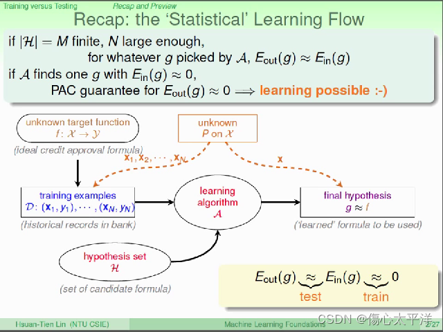 - 接着只要证明下面的式子是成立的,则 PLA 的学习是可行的
