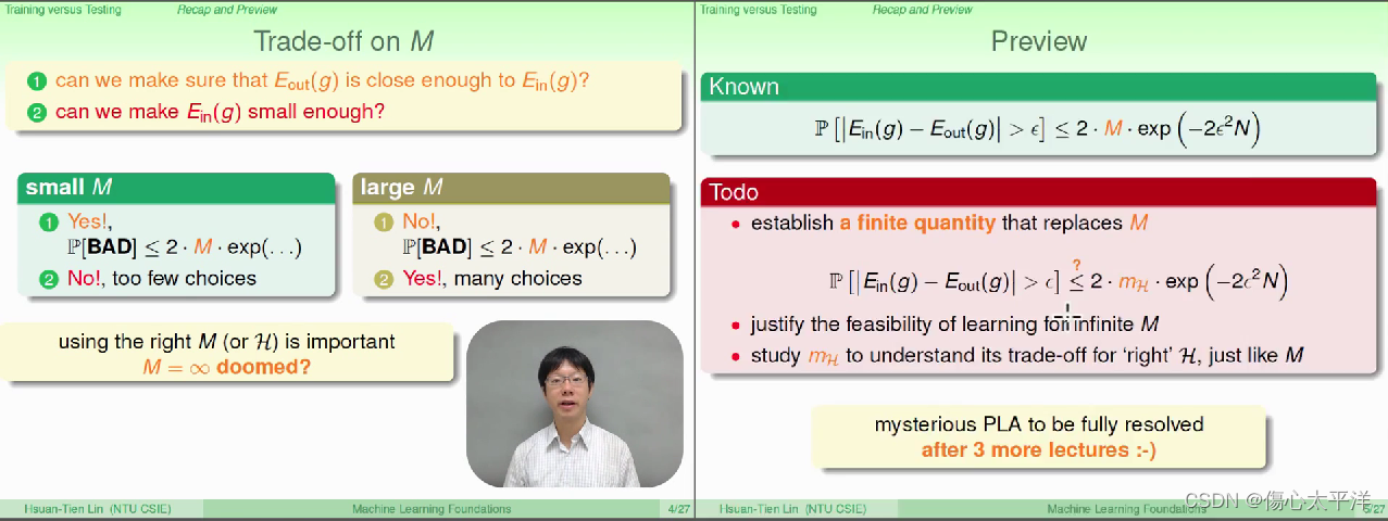 - 在接下来的课程,会尝试找出一个与 M 相关,但数值有限的