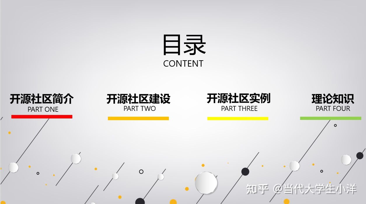 好,那么接下来呢,我们就从第一个部分开始,讲一讲什么是开源社区。