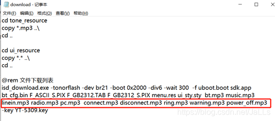 用记事本打开download.bat,可以看到这些提示音文件是在批处理中调用: