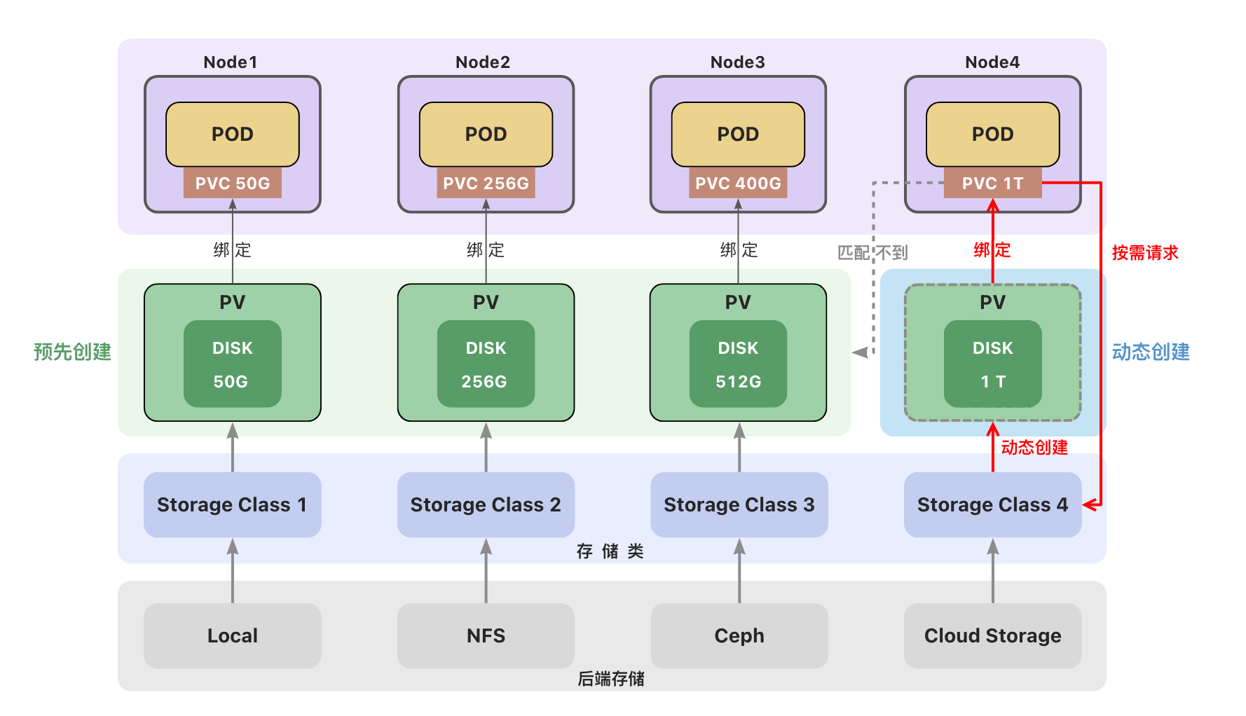 ○根据用户请求按需创建持久卷,在用户请求时自动创建
