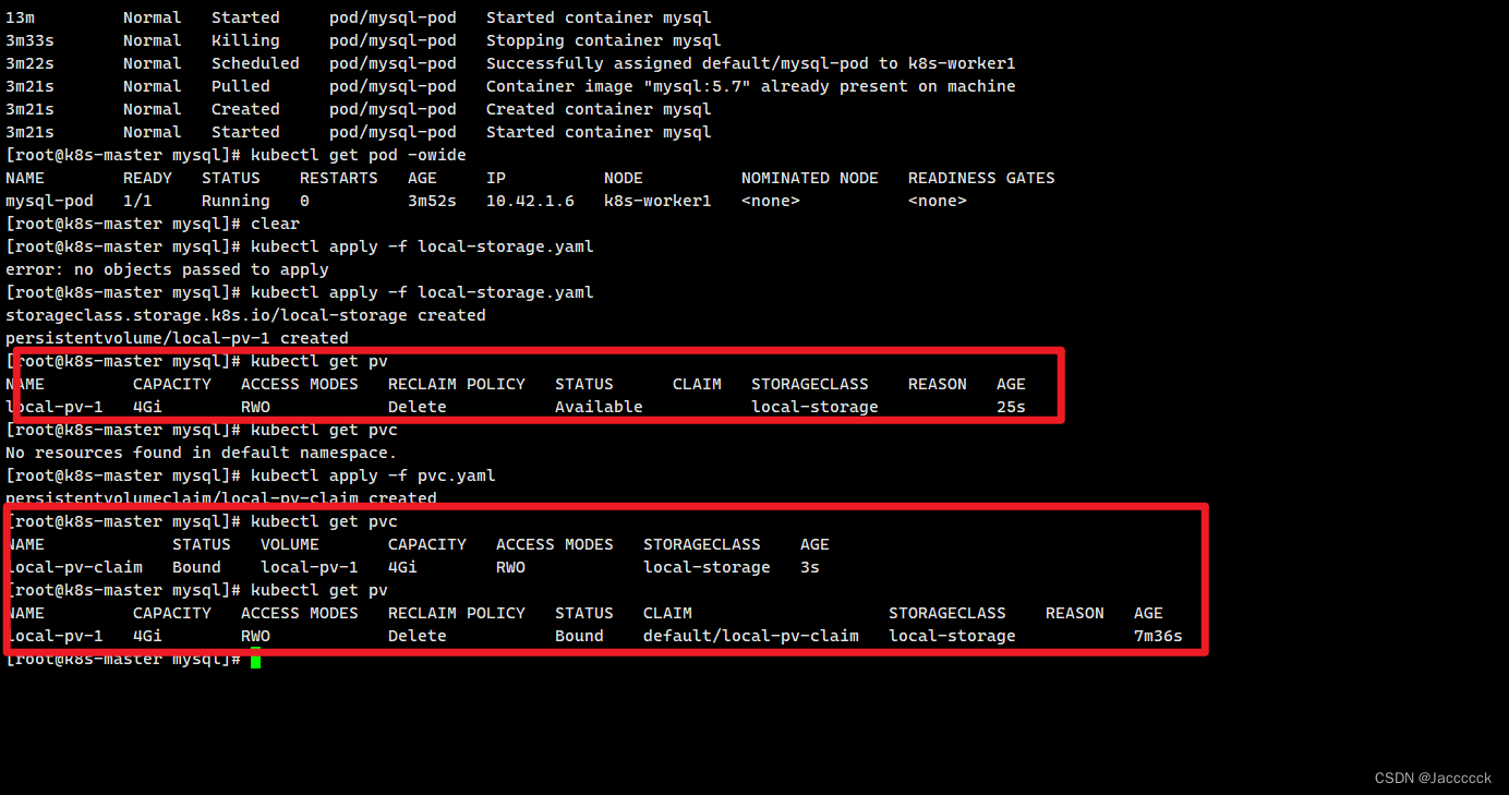 kubectl apply -f ocal-path-pvc.yaml时kubectl get pvc 状态为pending, kubectl get pv 为空