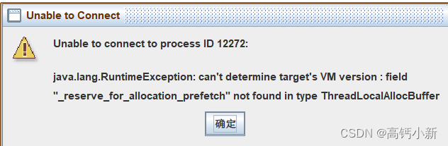报错原因:进程运行的 JVM 版本和启动的 JHSDB 的 JVM 版本不一致。
