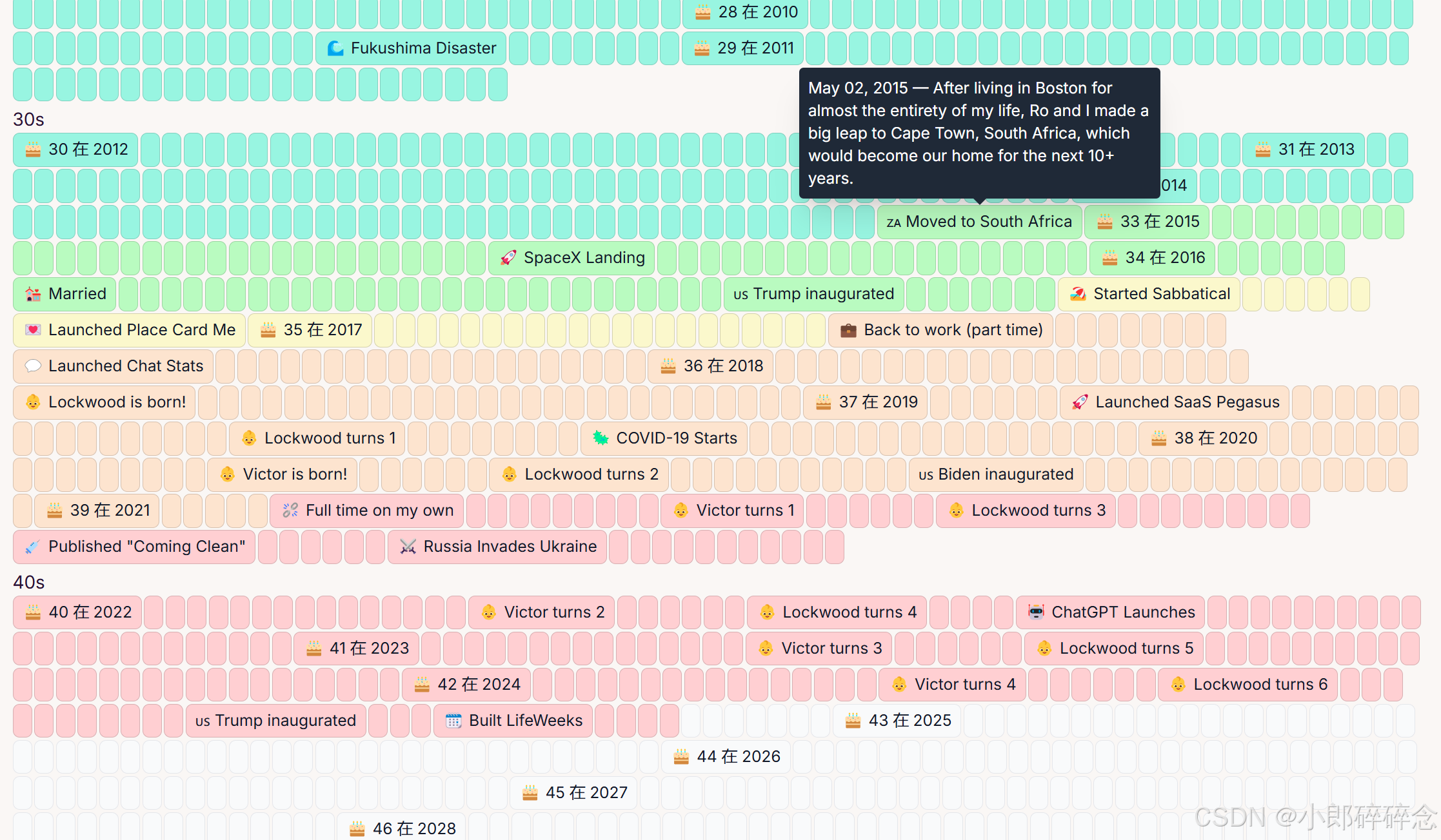 这个工具以周为单位,可以记录人生中的一些大事件,并将其清晰的可视化出来