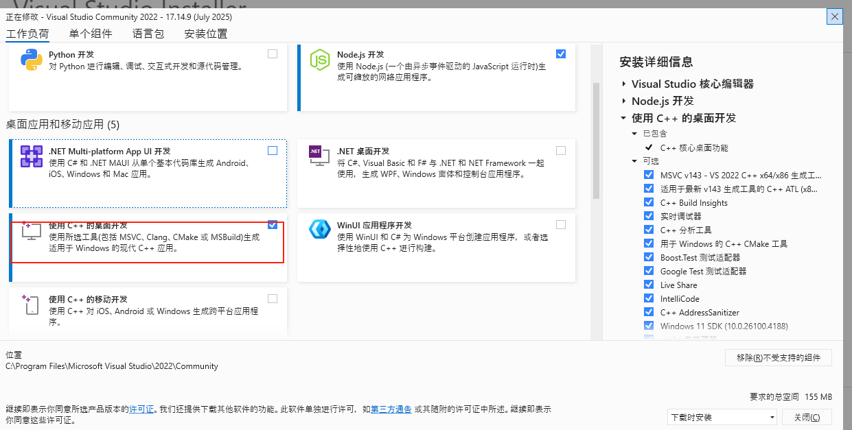 windows安装依赖要注意,因为这次要用的node蓝牙属于是c++的开发扩展,所以要安装node-gyp、VisualStudioSetup并选择使用c++的桌面开发安装后,才能完成node_moudel的编译和安装。