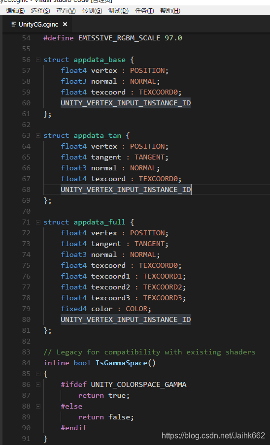 CGIncludes 中几个基本的 .cginc 文件如下: