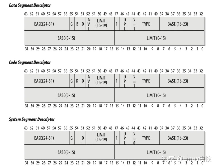 每个段被一个8字节的段描述符(Segment Descriptor)表示,描述了段的特征。