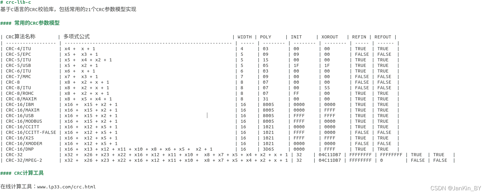 GitHub - whik/crc-lib-c: 基于C语言的CRC校验库,包括常用的21个CRC参数模型实现