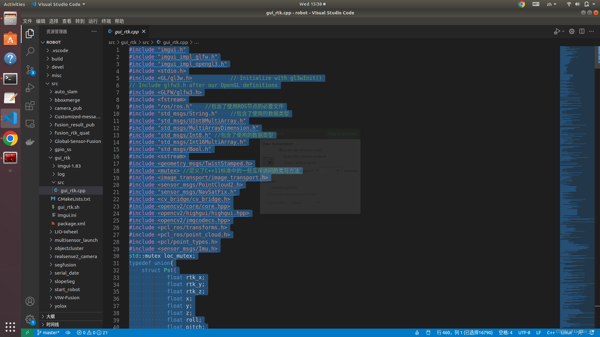 该程序展示了如何利用ROS和imgui创建一个图形化界面来直观监测传感器状态,包括相机、LiDAR、RealSense和里程计的连接状态及数据传输速率。通过接收传感器消息,实时更新界面,提供了一种方便的传感器状态检查和数据记录方法。