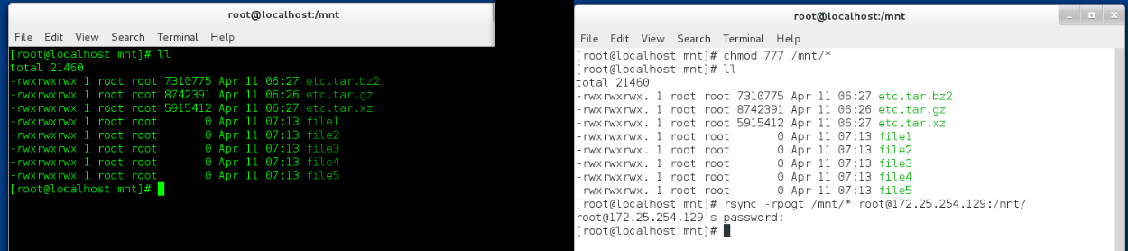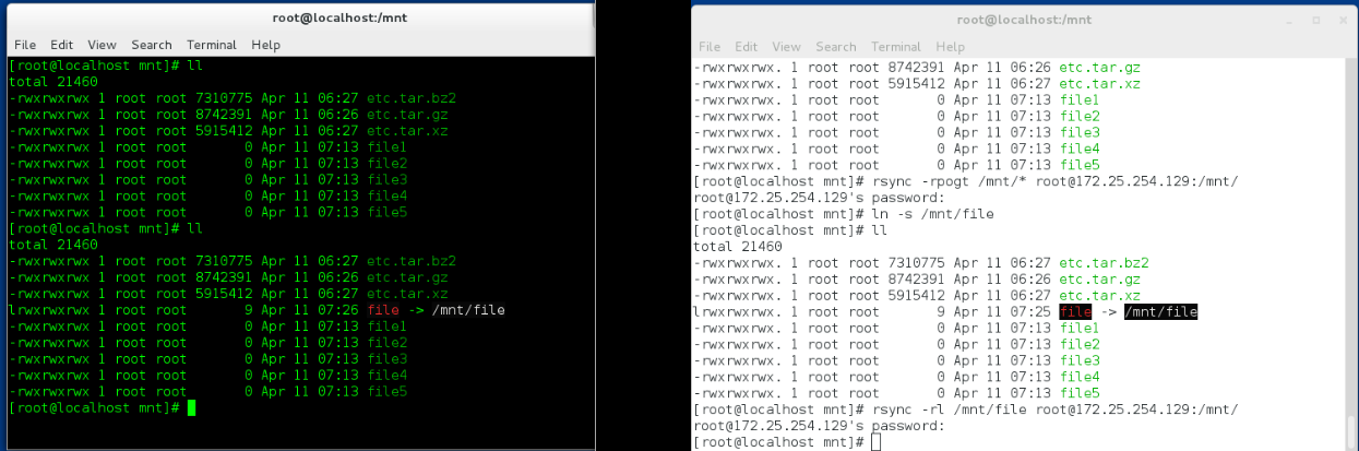 rsync -r /mnt root@172.25.254.121:/mnt/ 仅仅复制内容