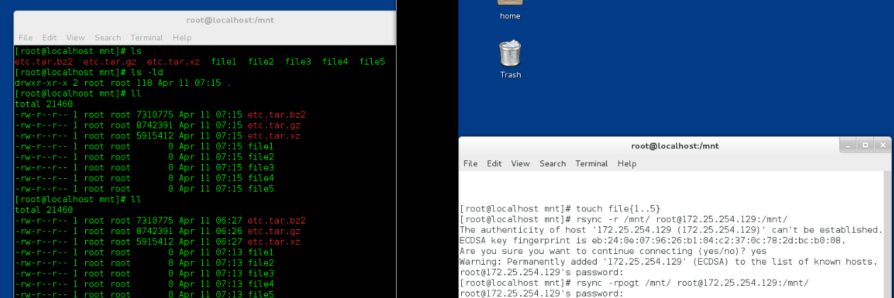 rsync -r /mnt/ root@172.25.254.121:/mnt/ 连同复制本身