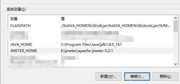 - 电脑桌面-—>“计算机”图标—>鼠标右键选择“属性”—>点击高级系统设置—>高级—>环境变量—>系统变量,创建JMETER_HOME,值是解压的JMeter安装路径(我本地是E:\jmeter\apache-jmeter-5.2.1)