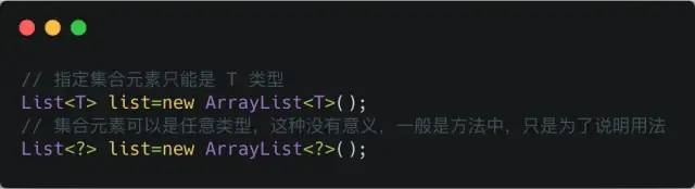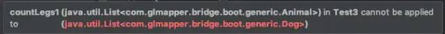 所以,对于不确定或者不关心实际要操作的类型,可以使用无限制通配符(尖括号里一个问号,即 <?> ),表示可以持有任何类型。像 countLegs 方法中,限定了上届,但是不关心具体类型是什么,所以对于传入的 Animal 的所有子类都可以支持,并且不会报错。而 countLegs1 就不行。