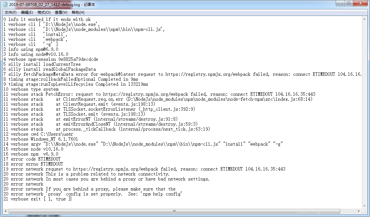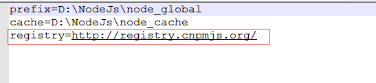 3、直接编辑c盘下的.npmrc文件,将registry的值修改为: