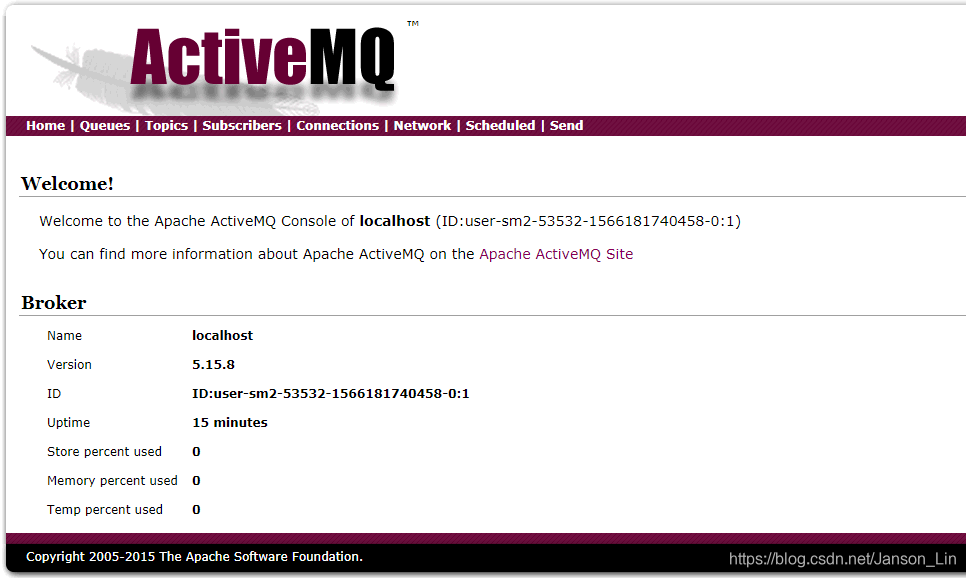 测试:127.0.0.1:8161/admin (账号密码都为admin)
