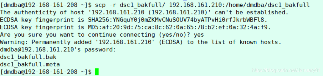 Scp -r dsc1_bakfull/ 192.168.161.210:/home/dmdba/dsc1_bakfull