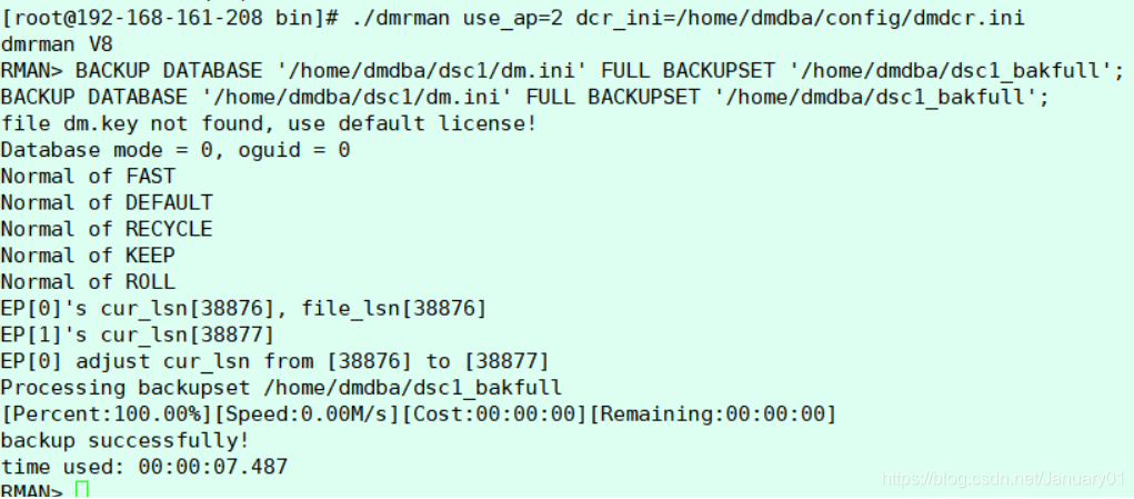backup database '/home/dmdba/dsc1/dm.ini' full backupset '/home/dmdba/dsc1_bakfull';
