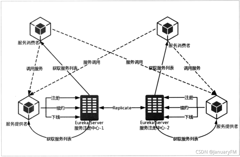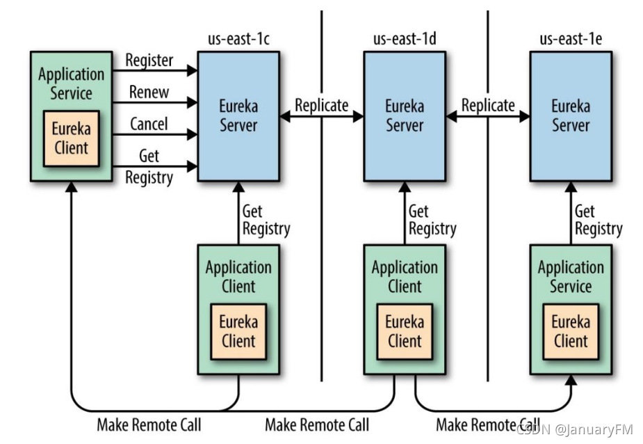 Replicate(集群中数据同步):Eureka 集群中的数据复制与同步。