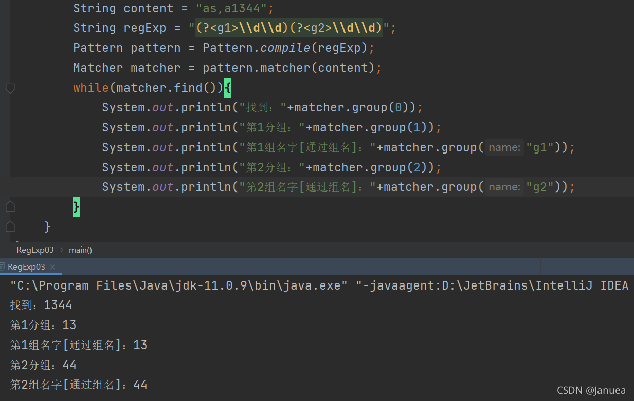 * 2.2 记录1组()匹配到的字符串 groups[2] = 0 groups[3] = 2