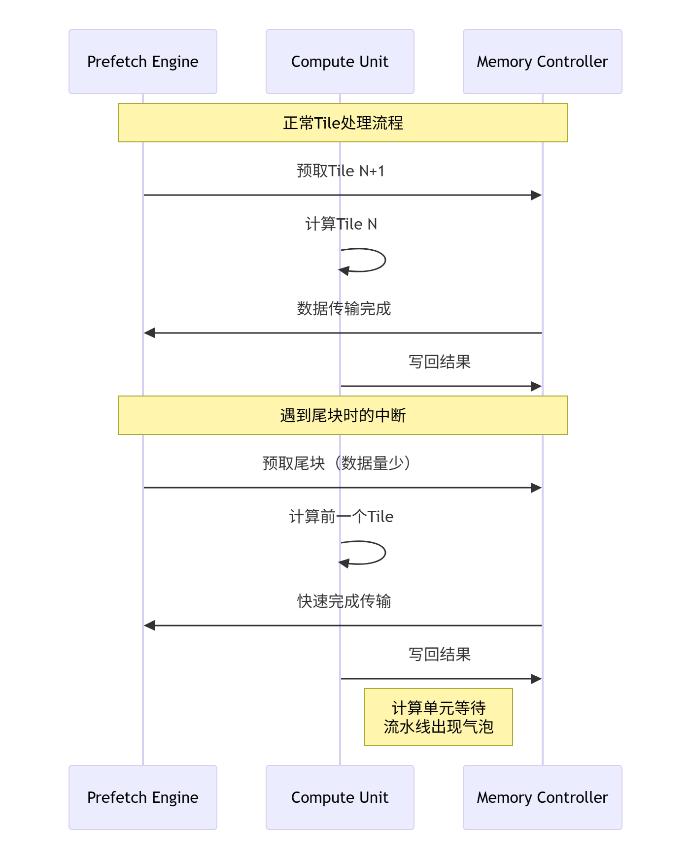 计算资源浪费:尾块可能只占用部分计算单元,其余单元空转
