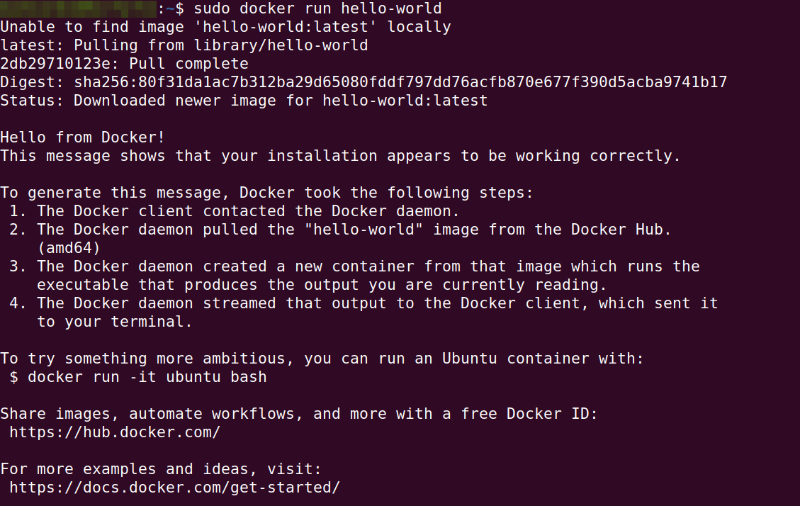 sudo docker run hello-world