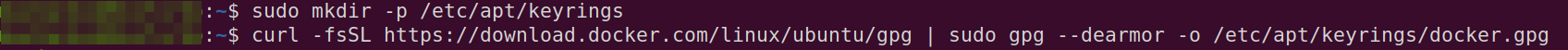 curl -fsSL https://download.docker.com/linux/ubuntu/gpg | sudo gpg --dearmor -o /etc/apt/keyrings/docker.gpg